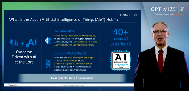 本周,在AspenTech舉辦的、面向工業(yè)高管的全球盛會(huì)OPTIMIZE 2021上,AspenTech高級(jí)副總裁兼AIoT解決方案團(tuán)隊(duì)總經(jīng)理Bill Scudder探討了AI和工業(yè)物聯(lián)網(wǎng)(IIoT)的融合將如何加速資本密集型行業(yè)的數(shù)字化進(jìn)程。他首先介紹了屢獲殊榮的Aspen AIoT Hub™如何提供集成的數(shù)據(jù)管理、邊緣和云基礎(chǔ)設(shè)施,以及生產(chǎn)級(jí)的人工智能環(huán)境,以企業(yè)級(jí)的速度和規(guī)模構(gòu)建、部署和托管工業(yè)AI應(yīng)用,并推動(dòng)未來(lái)的數(shù)字化產(chǎn)業(yè)。