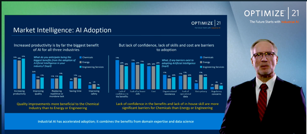 專家們還討論了AspenTech最近進(jìn)行的一項(xiàng)針對(duì)性調(diào)查的結(jié)果,該調(diào)查旨在評(píng)估人工智能在工業(yè)客戶中的應(yīng)用情況。通過(guò)研究和與客戶交談,我們了解到: